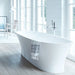 This freestanding bathtub features a sleek silhouette and a high-gloss white finish, adding timeless elegance to any bathroom décor. Its refined design enhances the aesthetic appeal of any space, making it a sophisticated focal point.