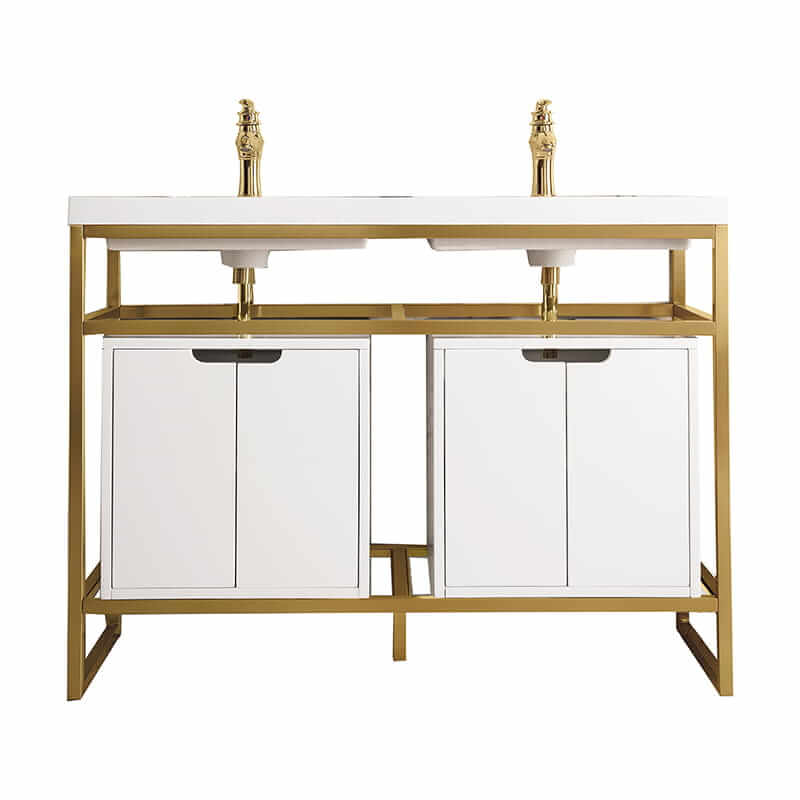 Moisture-resistant engineering further enhances reliability, with sealed components that guard against swelling, fatigue, and environmental wear. Precision joinery and reinforced connections minimize shifting and preserve structural cohesion under regular load. In addition, responsibly sourced hardwoods contribute to both environmental stewardship and extended product lifespan, reflecting a commitment to sustainable material selection without compromising durability — qualities that define the Boston 47 Inch Double Console Vanity by James Martin.