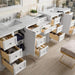 Experience thoughtful technology integration with discreet in-drawer electrical outlets and USB ports that simplify device charging while preserving a clean, uncluttered look. This 118-inch double vanity effortlessly blends utility and refinement, making it a smart choice for those seeking seamless design with practical convenience.